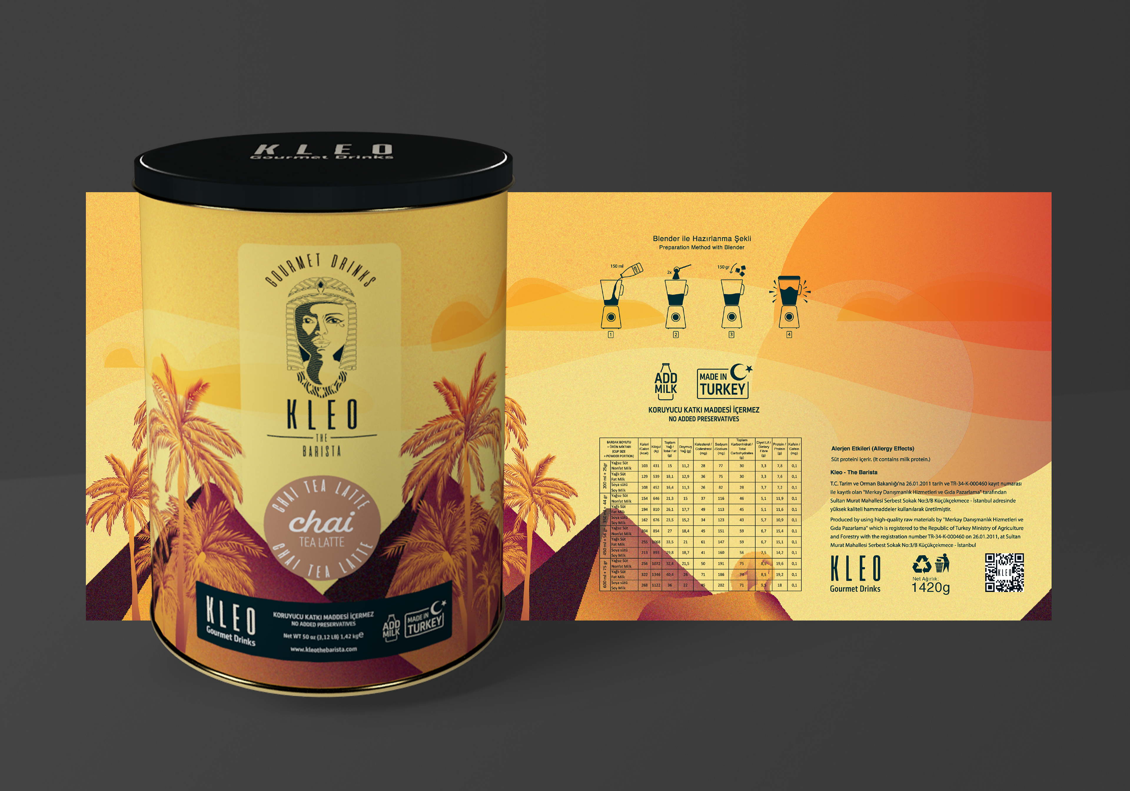 Kleo has contacted me for corporation on their branding works on the beginning of 2019. They were looking for a designer to make logo, identity and packaging design. I got inspired from face of Cleopatra and the symbols of Ancient Egypt while working on their identity and packaging designs. I wanted to add something from me with sunset to the illustration. I drew views of pyramid at sunset because of I am a complete sunset fan. I also designed labels, preparation methods and icon set for all products they have. After perfect collaboration with them this work appeared.