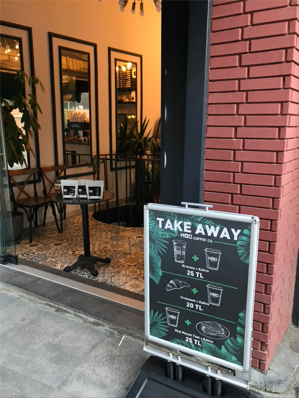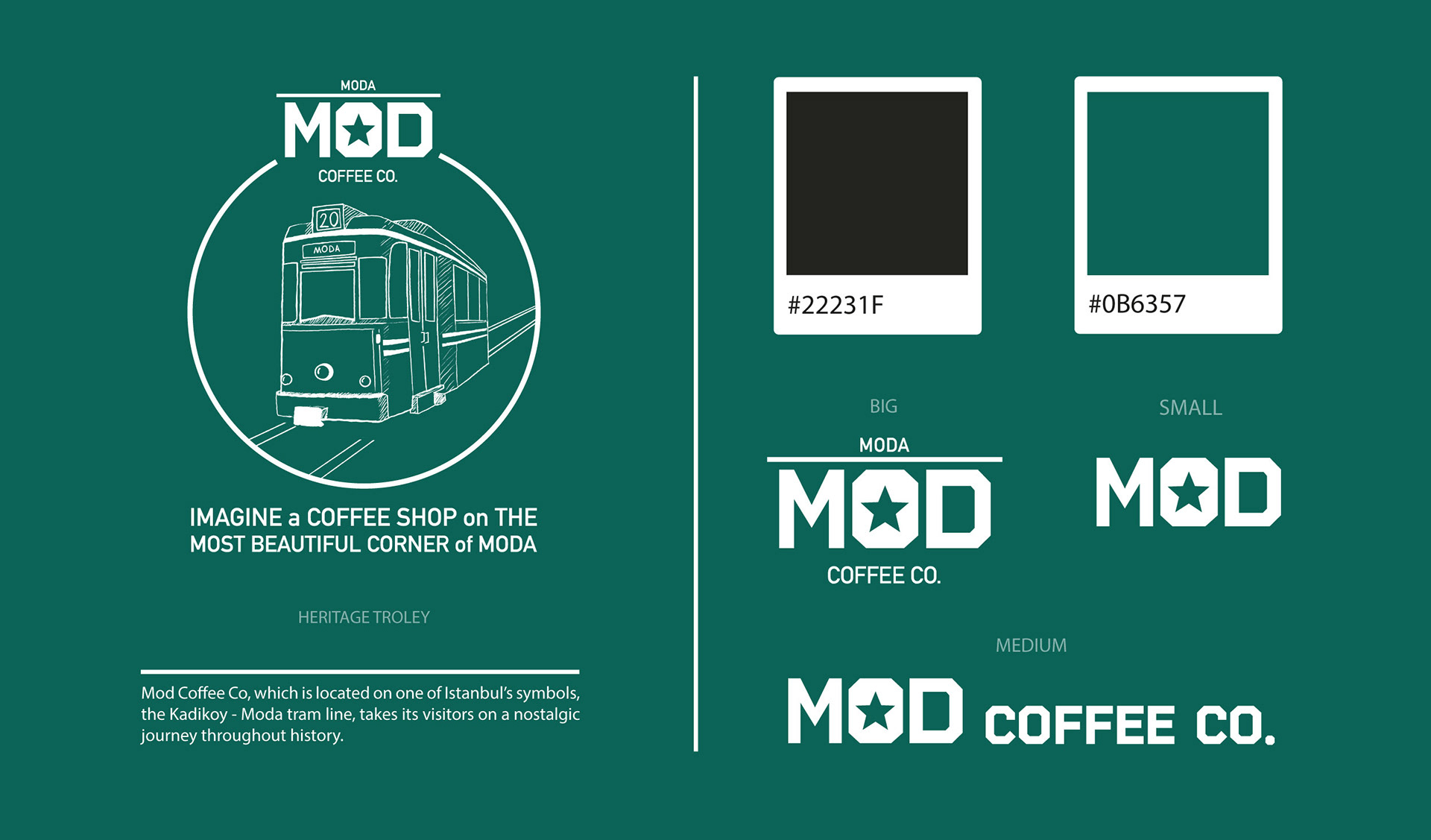 Mod Coffee Company is a cute cafe next to the tramway in Kadikoy Bahariye, Mod Coffee Company, placed at one of the most beautiful corners of Moda, is a place where you can have a pleasant time with its delicious coffees and nostalgic tram view. It was a very pleasant coincidence that we had met the owner of the cafe and we started working with desire right after we talked about the project. I tried to reflect the feelings of the location of the cafe, the hospitality and positive energy of the owner to the design. Hope you like it.